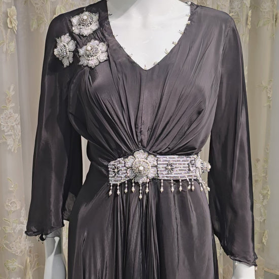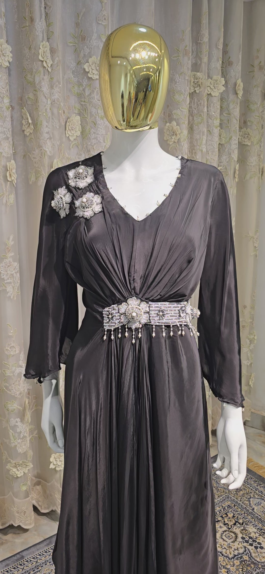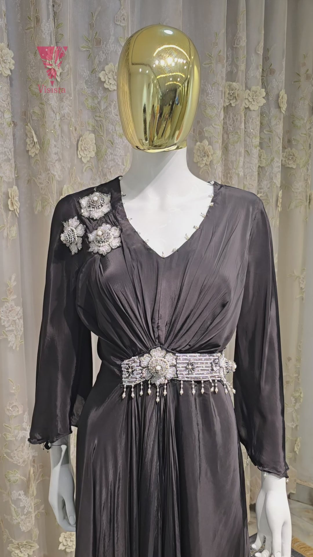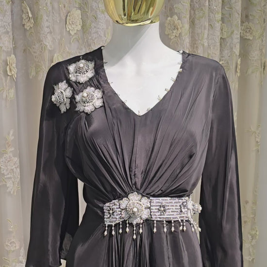 Black Pure Crepe Dress with 3D Stone Work & Attached Belt