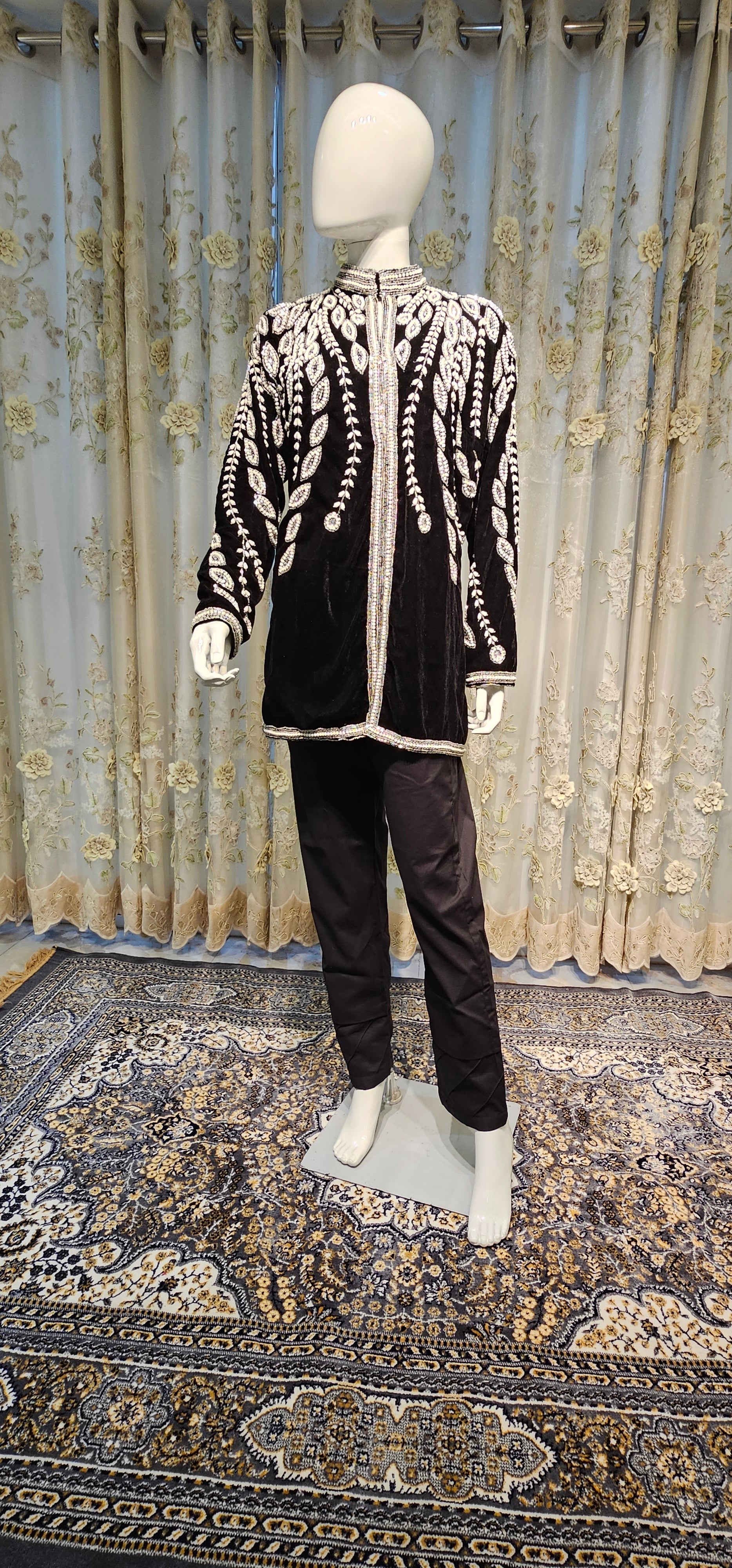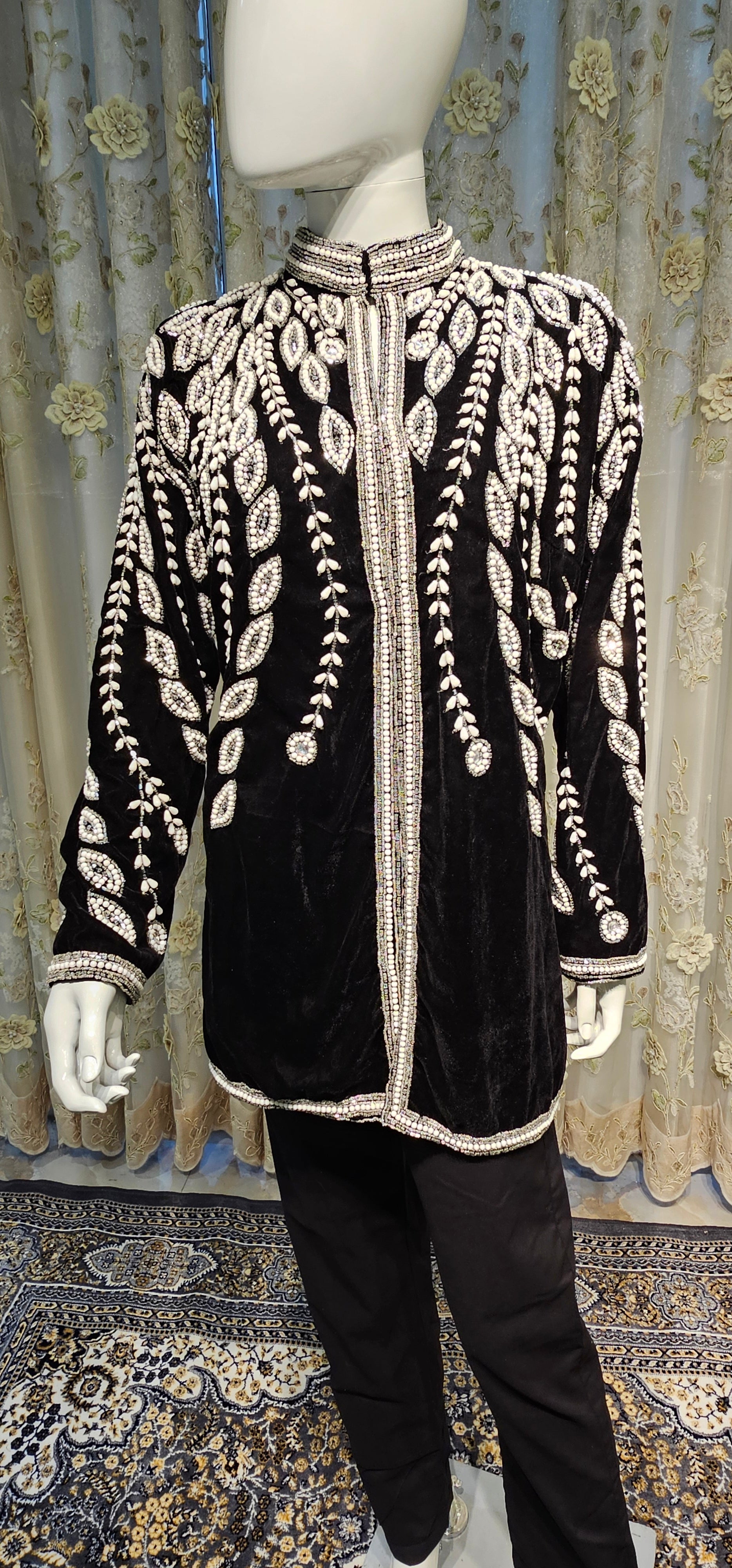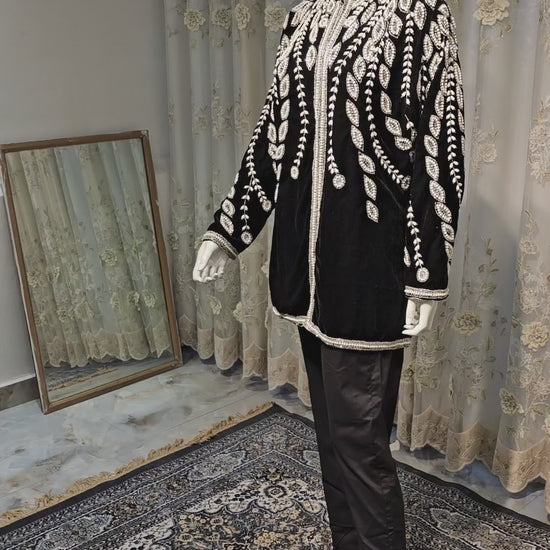 A statement-making blazer crafted in soft, rich velvet, lavishly hand embellished for an unmistakably luxurious finish. Designed to catch the light and attention, it adds a refined opulence to any occasion, ensuring you look polished, stylish, and effortlessly standout.